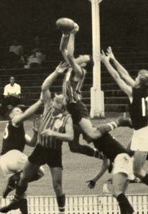 Powerful ruckman/key forward with Wilston-Grange and Coorparoo he commenced with the Gorillas as a junior in 1949. A member of Grange’s first premiership side in 1955, he went to Fitzroy in 1957 and kicked six goals in his AFL debut, but returned home after just one season in Melbourne. Was responsible for re-naming the club ‘Gorillas’ after his time with the then Fitzroy Gorillas. Played a total of 252 QAFL games, including six consecutive QAFL grand finals from 1959-64, having joined the Roos in 1960, before finishing his career back at Grange.