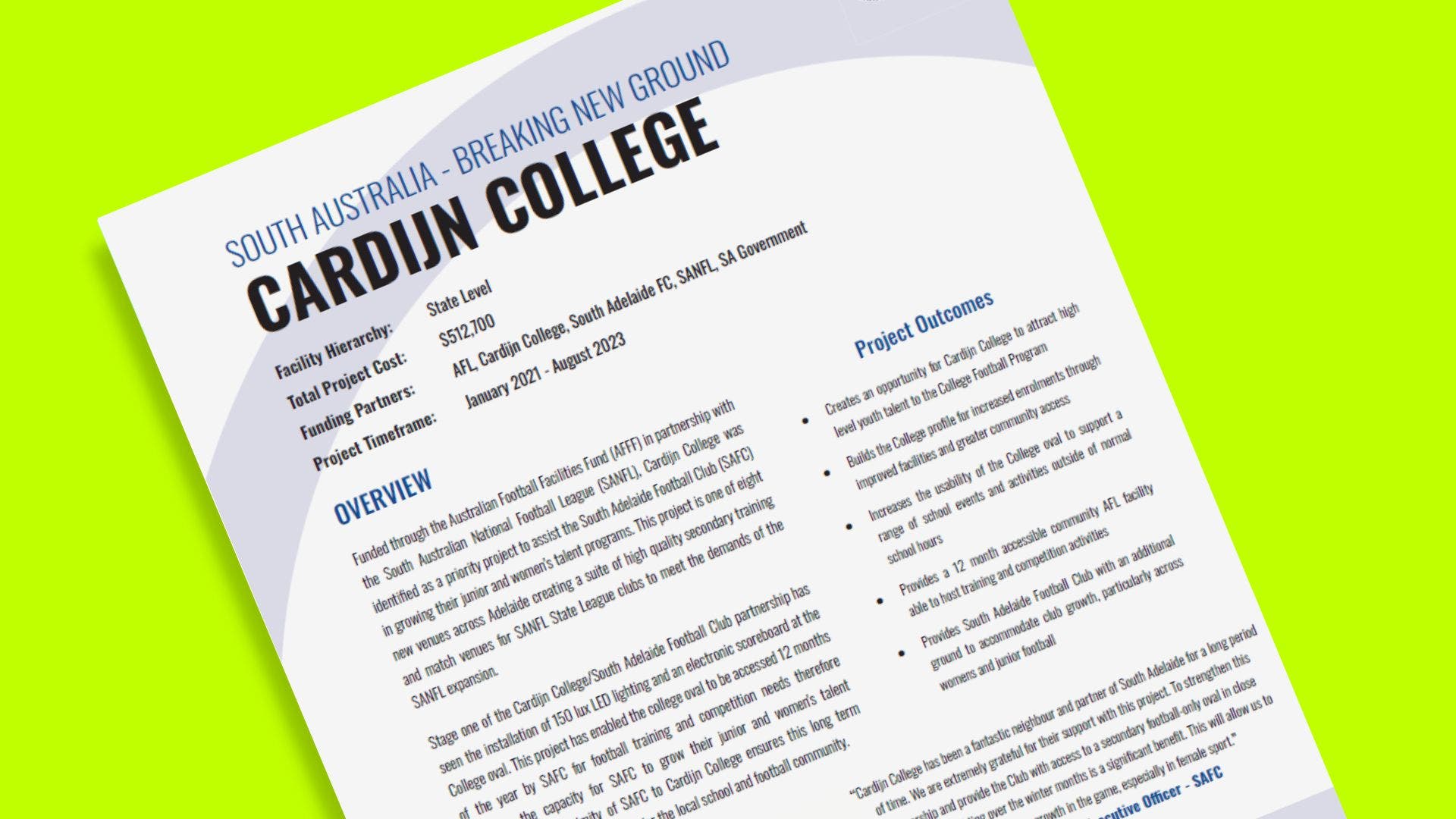 Funded through the AFFF in partnership with SANFL, Cardijn College was identified as a priority project to assist the SAFC in growing their junior and women’s talent programs.