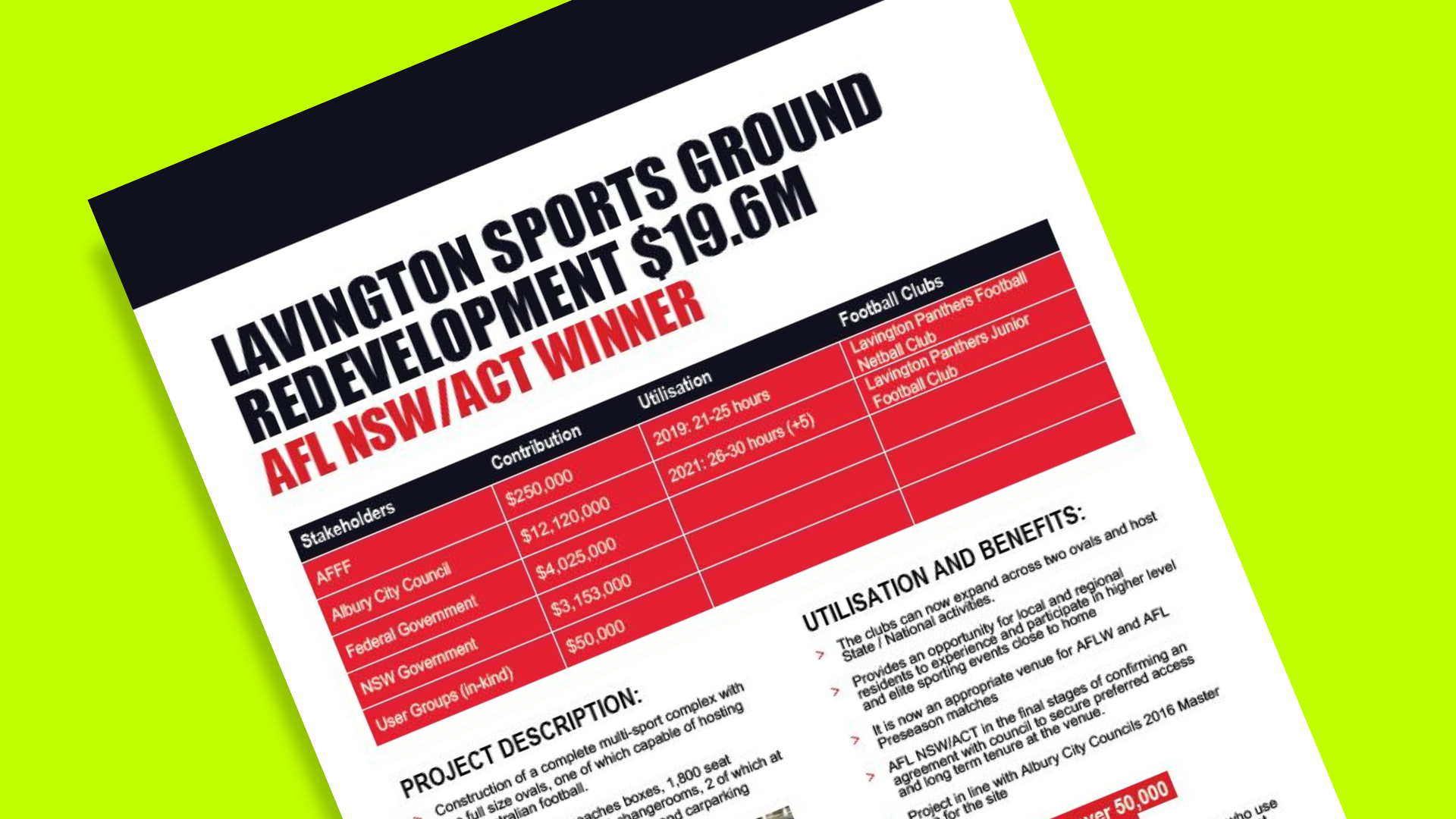 Construction of a complete multi-sport complex with two full size ovals, one of which capable of hosting elite Australian football.