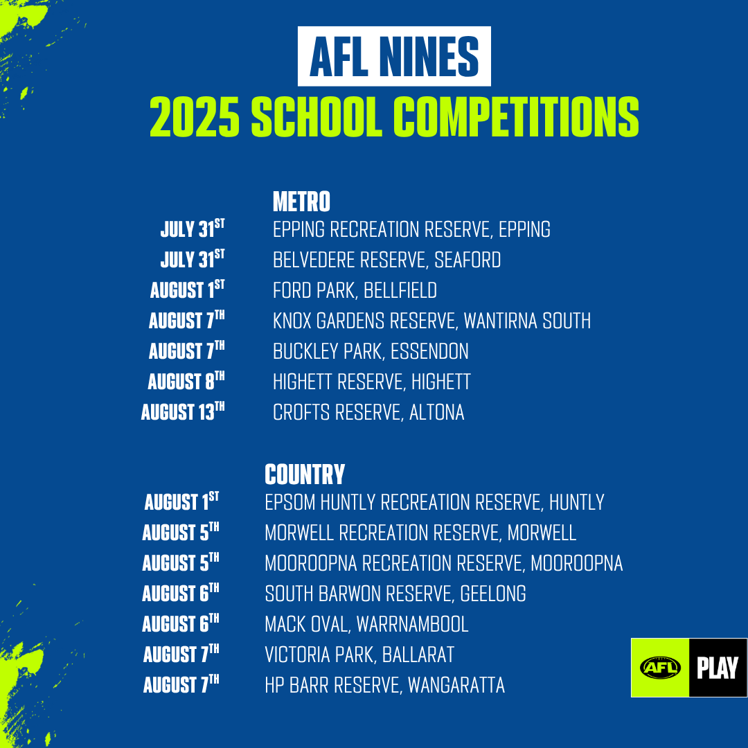 AFL Victoria is proud to launch the inaugural AFL Nines State Championships for Year 7 and 8 students this year – proudly aligned with the 2025 Herald Sun Shield.