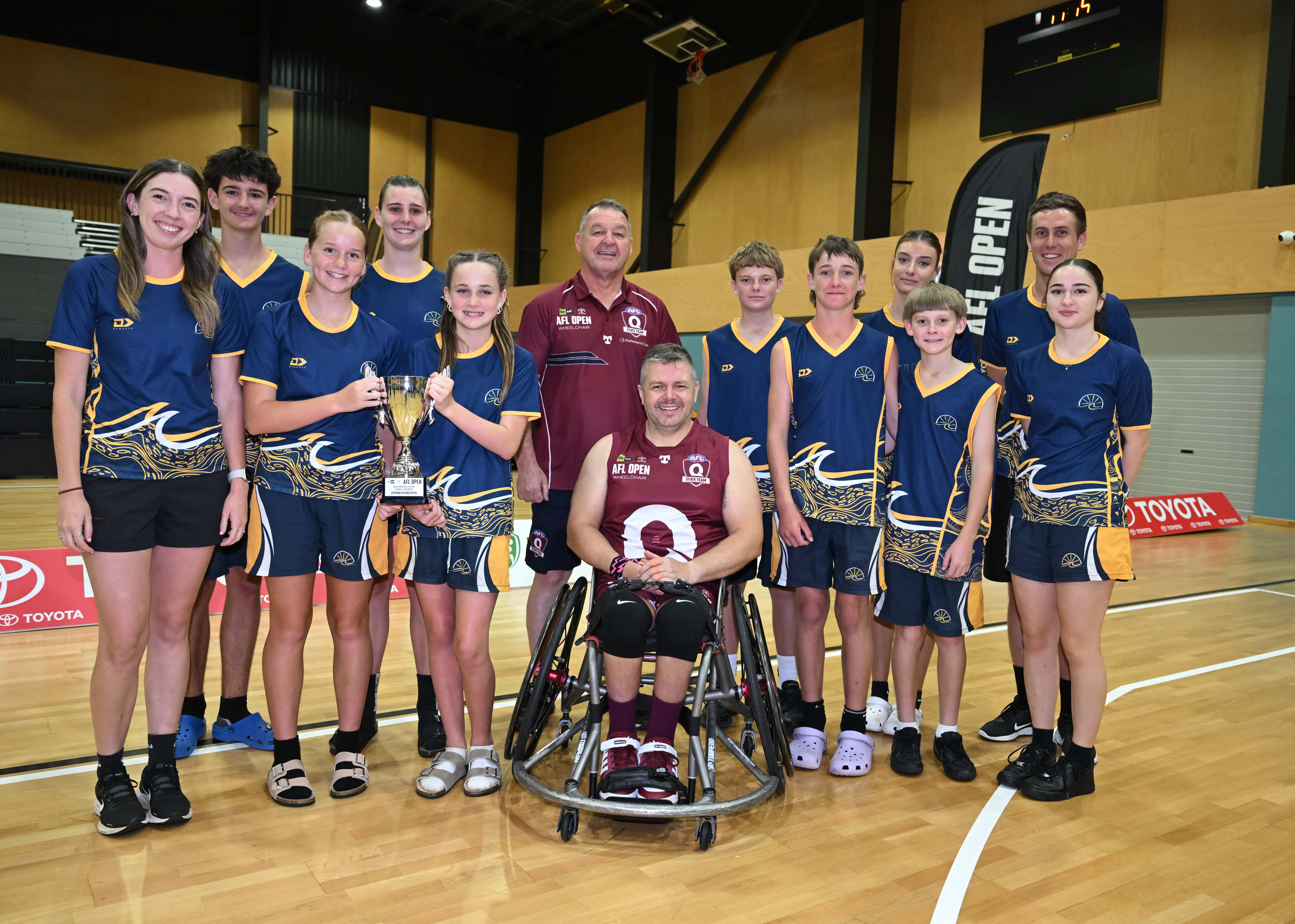 To celebrate and acknowledge the achievement, members of Bribie Island and Banksia Beach school’s AFL program attended the Toyota AFL Open at South Pine Sports Complex. There, they had the opportunity to witness the country's top wheelchair and inclusion athletes competing in the national championships and spent time with the Queensland Wheelchair team and its coaches Michael Dobbie-Bridges and David Lake.