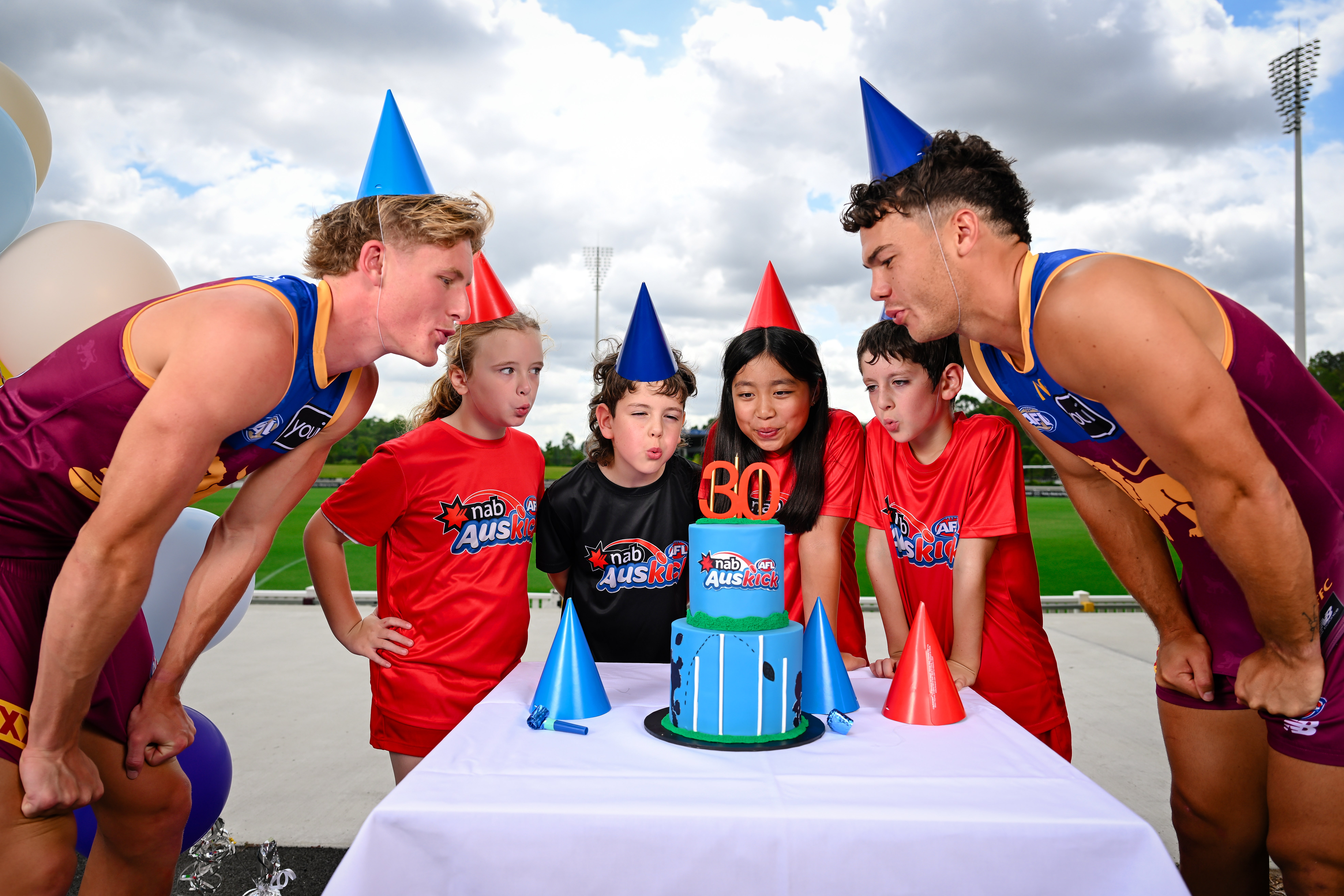 The milestone birthday was marked in the sunshine state with celebrations at Brighton Homes Arena, the home of the Brisbane Lions. With players Cam Rayner and Jaspa Fletcher on hand to share their fond memories of growing up and playing Auskick.