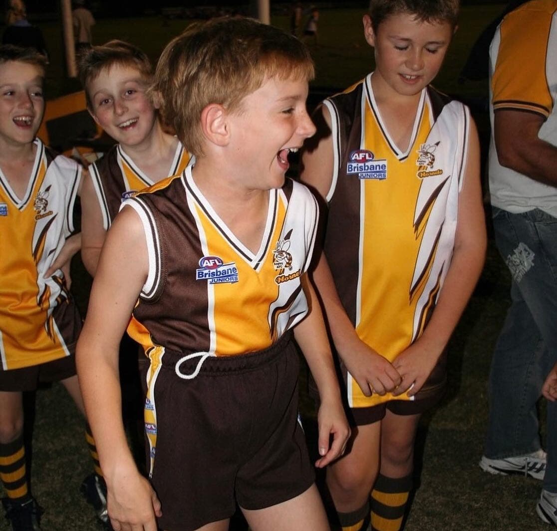 Harris, who had become an Essendon fan like his father just because that’s how it was, moved with his family from Melbourne to Brisbane at four and began his education at Aspley State School and his football career at the Aspley Hornets.