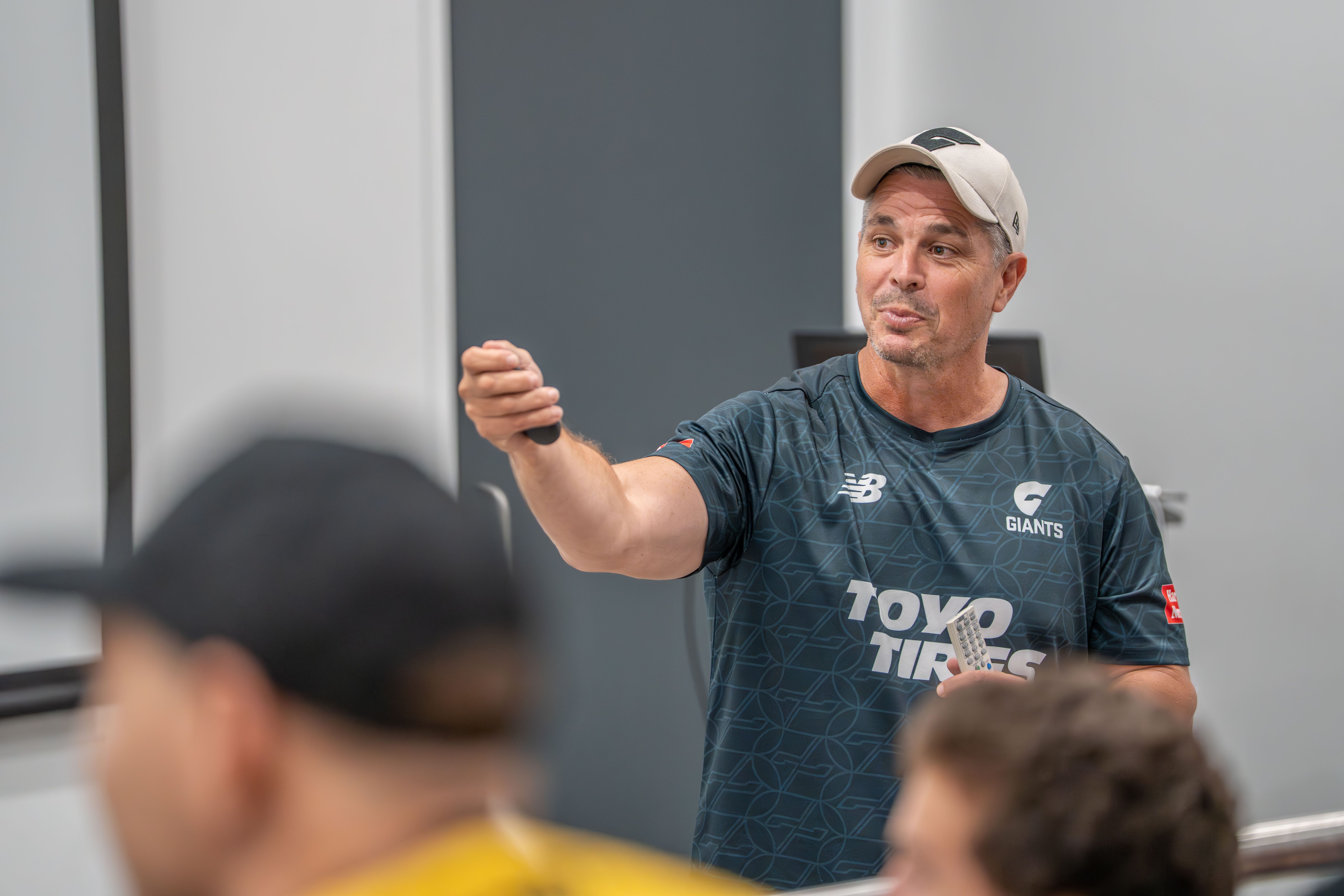 During the workshop, Kingsley led participants through best-practice drills, effective review processes, and the importance of creating a supportive team culture. Sessions took place both in the classroom and inside the GIANTS' indoor training facility - known as ‘the cage’ - giving coaches a first-hand look at how elite training methods can be adapted to local clubs.
