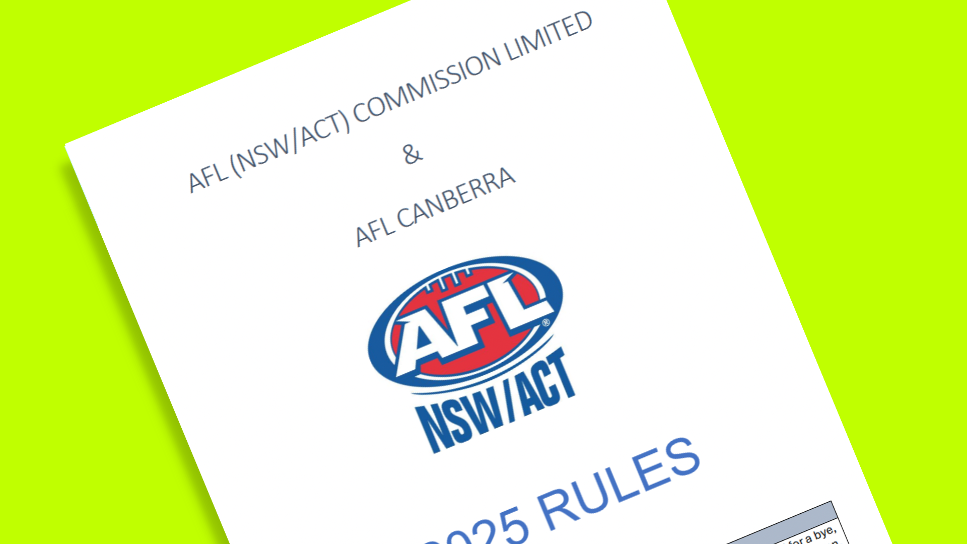 The League Rules operate alongside the National Community Football Policy Handbook, Laws of Australian Football and Junior Rules Program Handbook and set-out the League's local regulations including Club Participation, Competiton and Match Day Management and Disciplinary Processes.