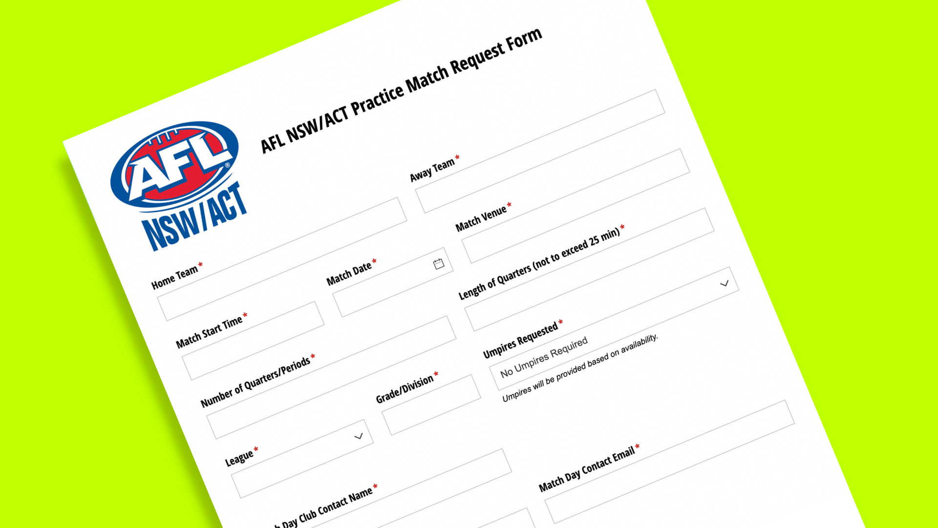 This form is to be submitted to the League by the Host Club no later than midday Tuesday prior to any Practice Matches involving two different Clubs.