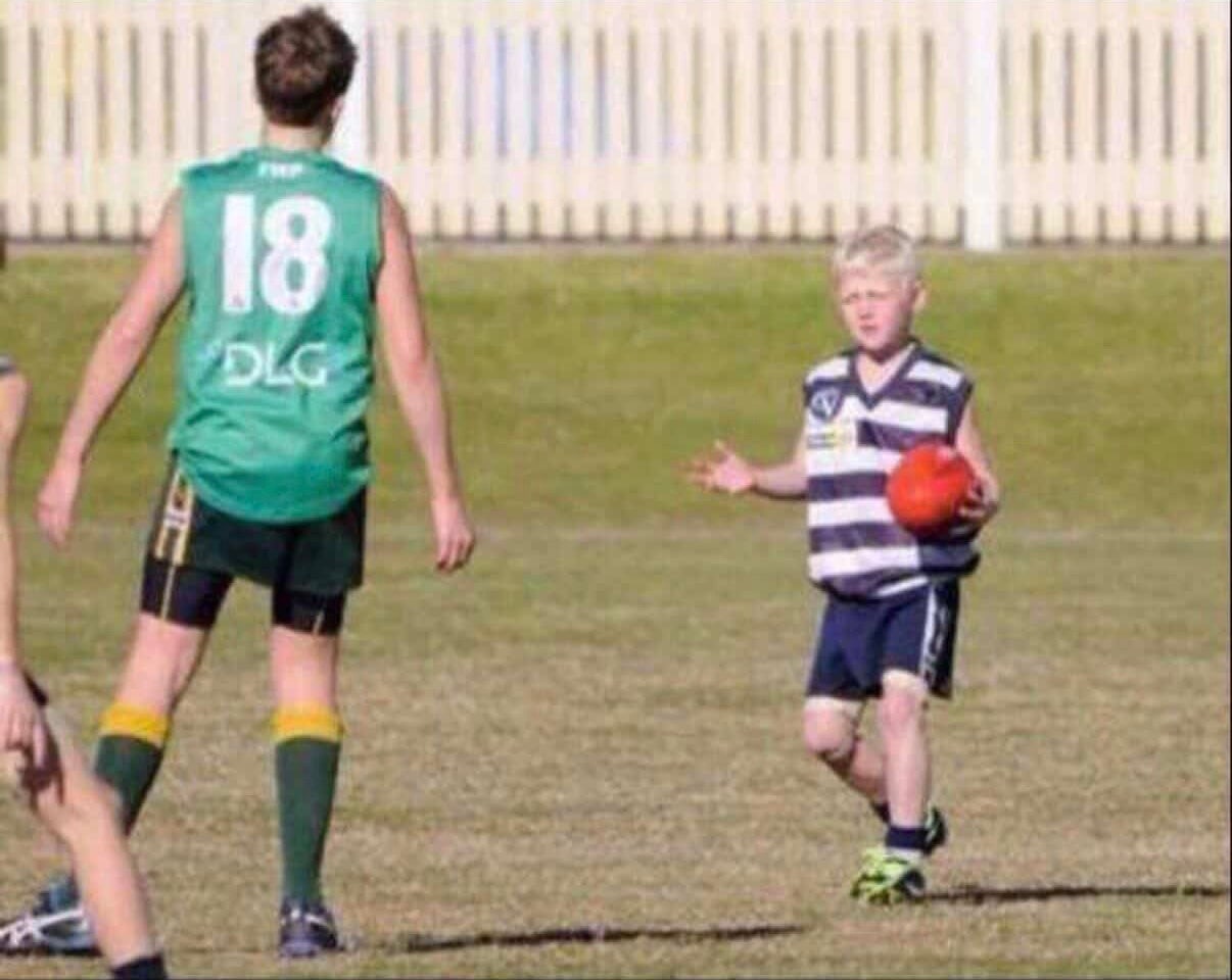 Image: Ben Woodburn playing for the Yarrawonga Pigeons Junior Football Club.