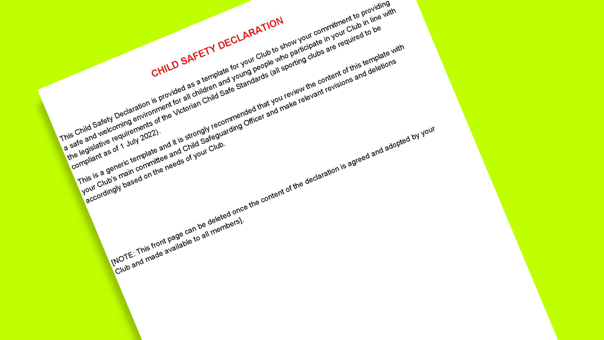 This Child Safety Declaration is provided as a template for your Club to show your commitment to providing a safe and welcoming environment for all children and young people who participate in your Club.