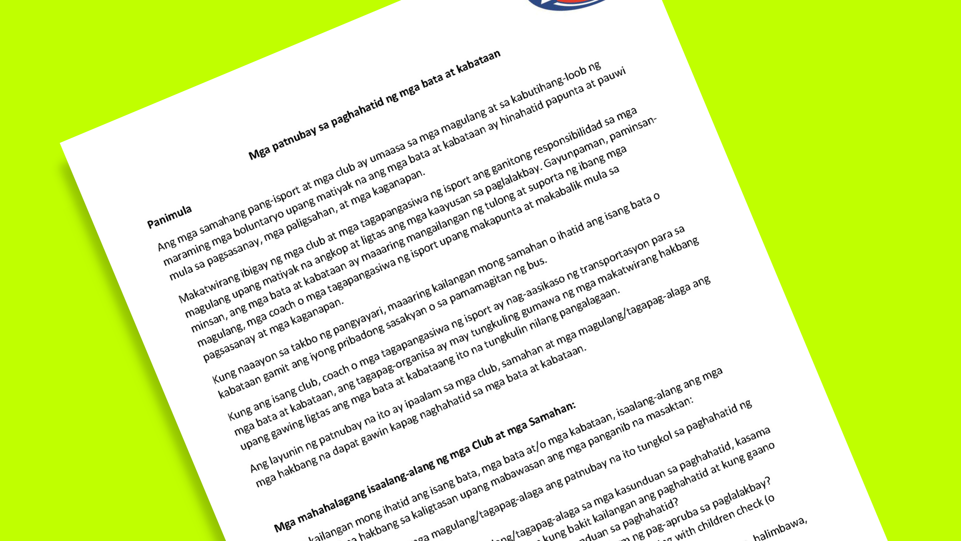 Translated - Transporting Children & Young People Guidelines - Tagalog