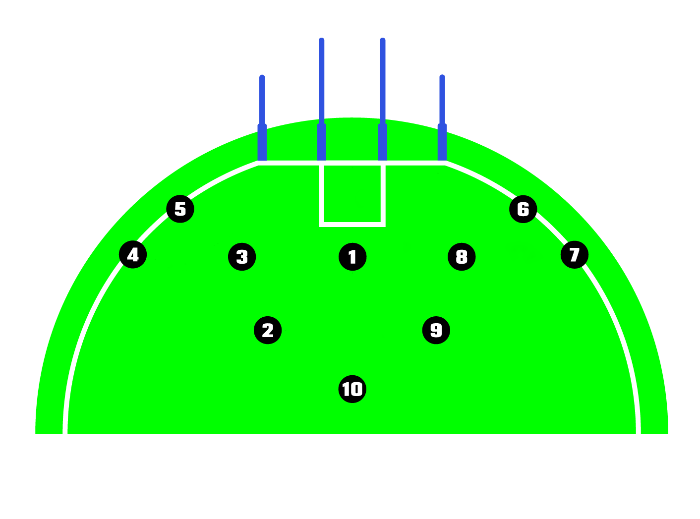 The South Australia Kick Off can be facilitated on both an inside 50m of a football oval, or open green space. We recommend that at least 2 people set up the field as all the kicking points need to be measured as per the game guidelines.
