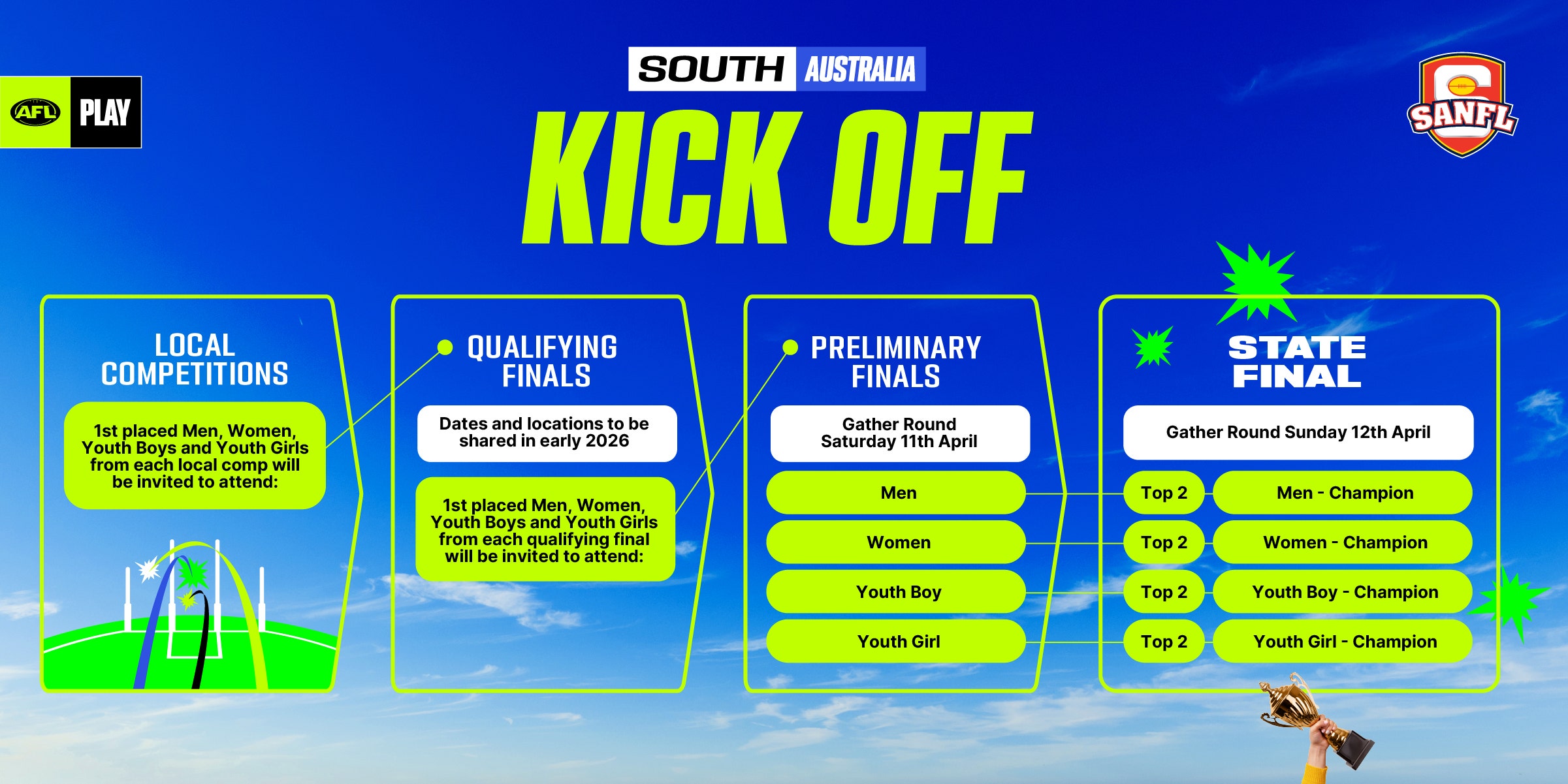 The competition will kick off at local community clubs with progression through to qualifying, preliminary and state finals, with the state final to be hosted during Gather Round 2026.