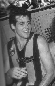 Kicked a career-best five goals on debut against North Melbourne in Round 5, 1988, when he stamped himself as a special prospect with 24 possessions, five marks and five hit-outs at centre half forward. Was injured the following week and didn’t play again that season. Playing mainly in the ruck after establishing himself in the side, he had his best years in 1990 (22 games) and ’91 (25 games). Played a key role in the ’91 grand final win over West Coast when runner-up to teammate Paul Dear for the Norm Smith Medal after collecting 21 possessions, 10 marks and 18 hit-outs.