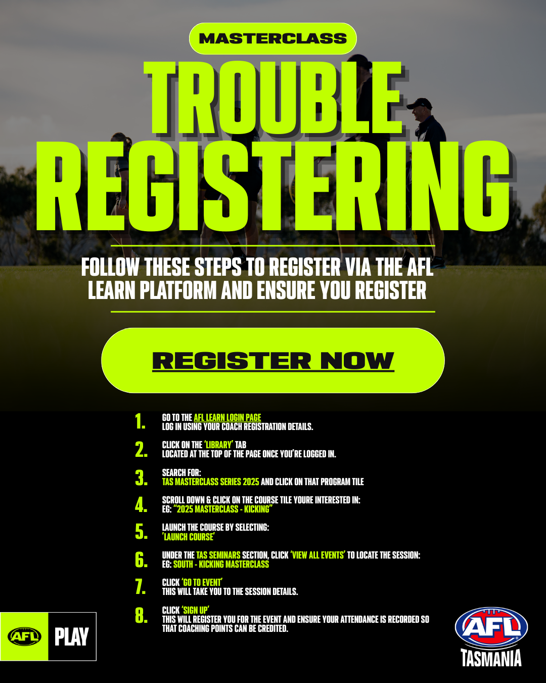 Register: https://afl.androgogic.com.au/mod/facetoface/eventinfo.php?s=2339