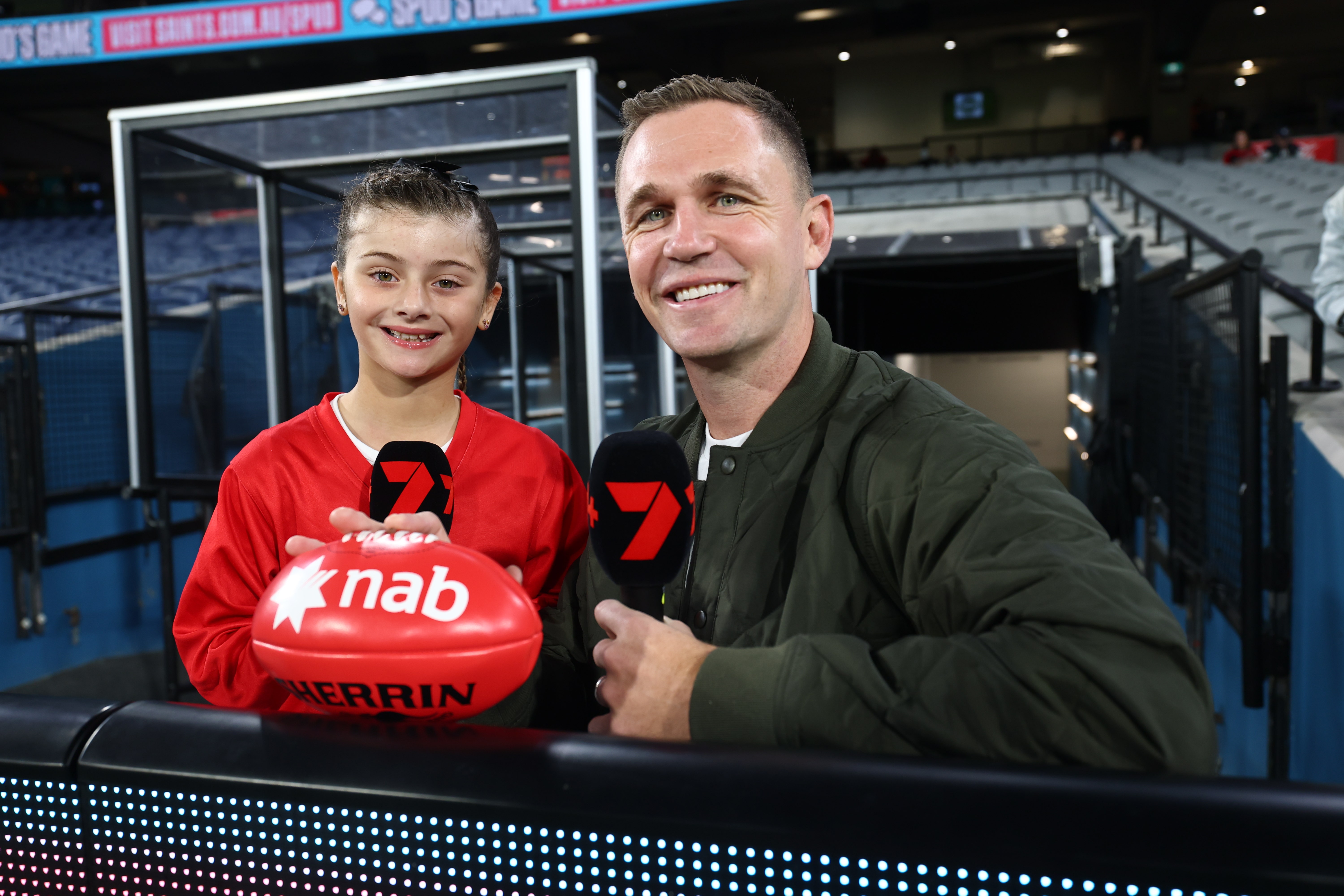 Allira was surprised at the MCG by Team NAB AFL Auskick coaches Nick Daicos and Katie Brennan ahead of her first official duty at the 2025 Brownlow Medal count.