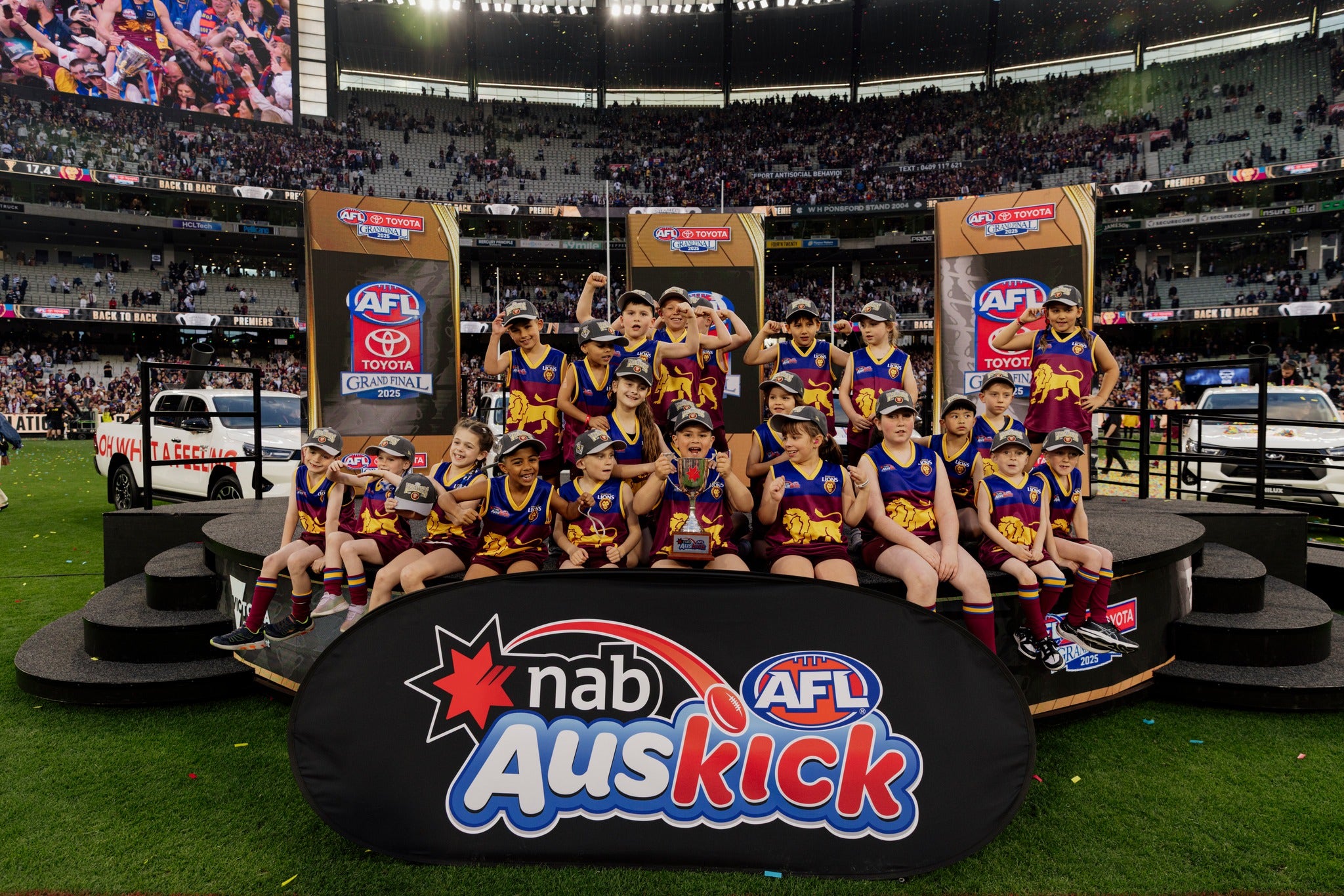 Allira and Raff had an absolute blast during half-time Auskick, and then got changed into the winning team's colours to present the Brisbane Lions with their 2025 premiership medals.