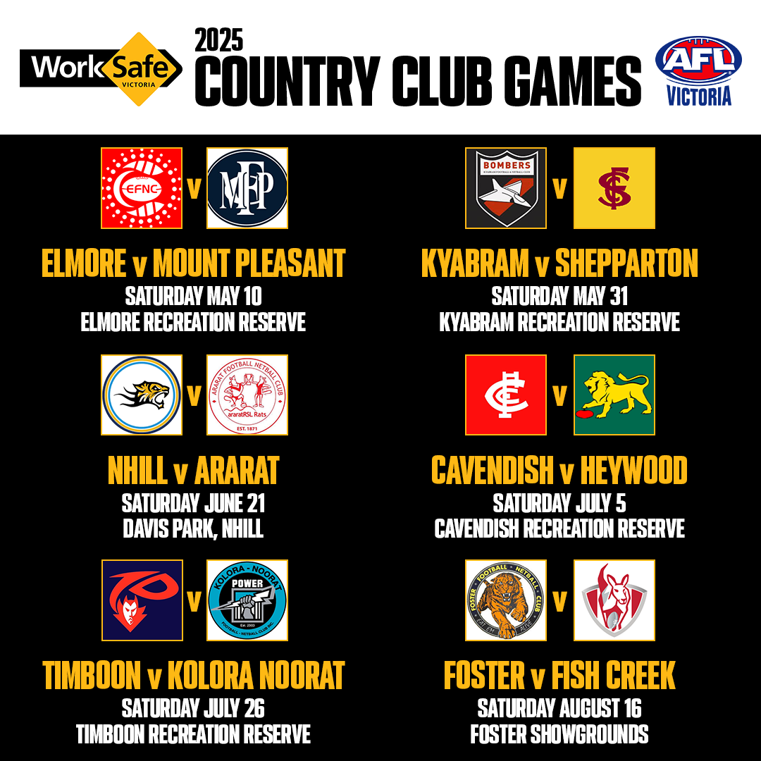 The 2025 WorkSafe Country Club Series kicks off this weekend in Central Victoria, with the Elmore Football and Netball Club (FNC) hosting the first WorkSafe Country Club Game of the season against Mount Pleasant FNC.