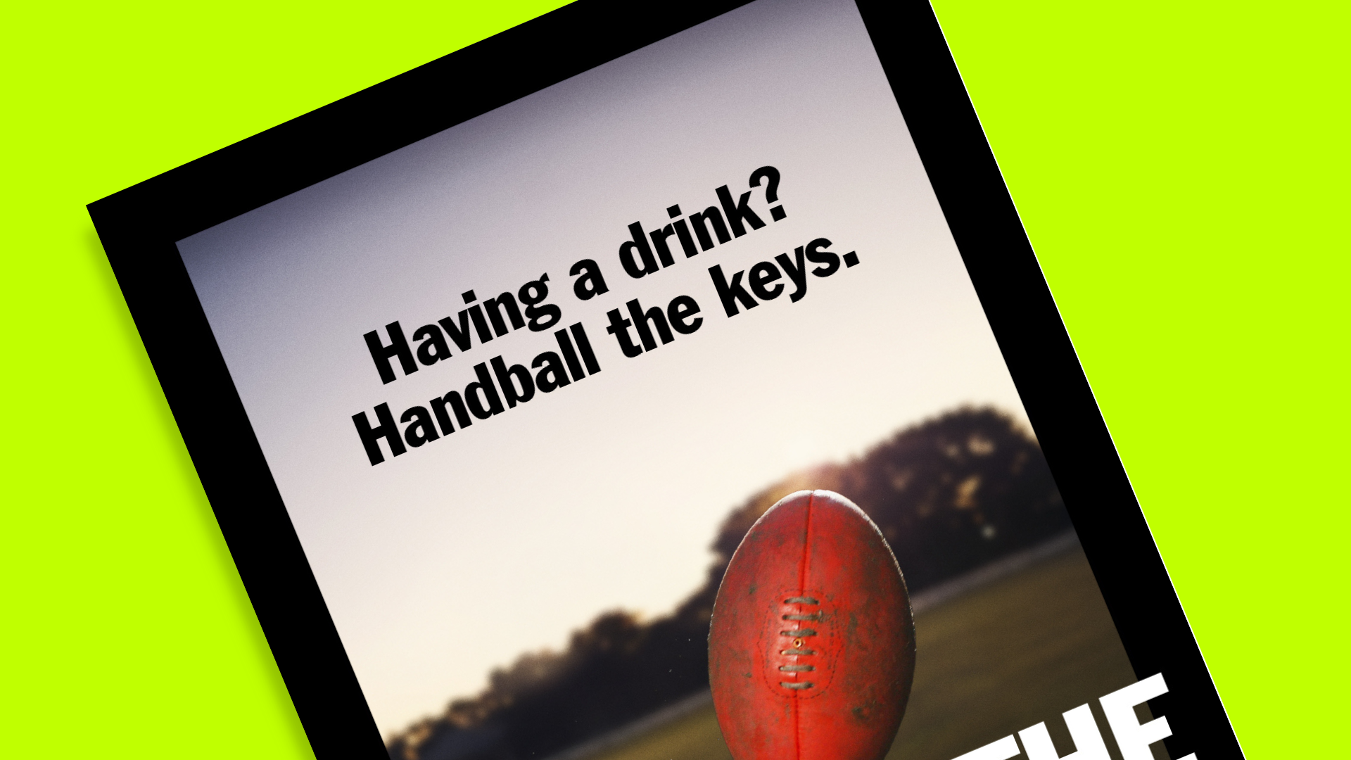 ‘Having a drink? Handball the keys.’ Share this important message to stop those who have consumed alcohol, from getting behind the wheel.
