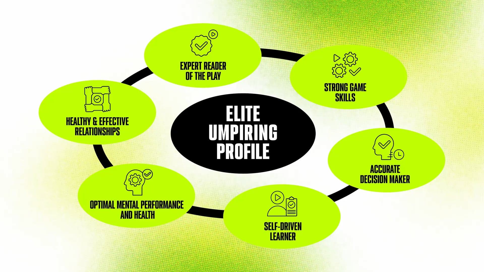 Related Videos PLAY PAUSE 187 ELITE UMPIRING CAPABILITIES: SELF-DRIVEN LEARNER 1750373182 Umpire Development Pathway PLAY PAUSE 187 ELITE UMPIRING CAPABILITIES: OPTIMAL MENTAL PERFORMANCE AND HEALTH 1750286730 Umpire Development Pathway PLAY PAUSE 196 ELITE UMPIRING CAPABILITIES: EXPERT READER OF THE PLAY 1750113803 Umpire Development Pathway PLAY PAUSE 148 ELITE UMPIRING CAPABILITIES: STRONG GAME SKILLS 1750027327 Umpire Development Pathway PLAY PAUSE 153 ELITE UMPIRING CAPABILITIES: ACCURATE DECISION MAKER 1749940843 Umpire Development Pathway PLAY PAUSE 1524 Building Healthy and effective relationships - Field Umpires 1729030000 Umpire Development Pathway