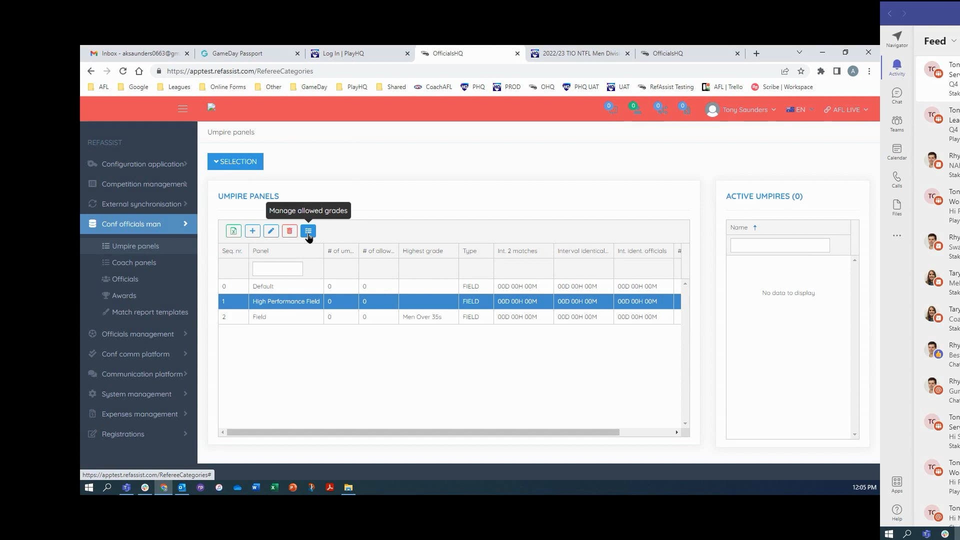 OfficialsHQ - Season Setup Configure Umpire Panels Manage Allowed Grades